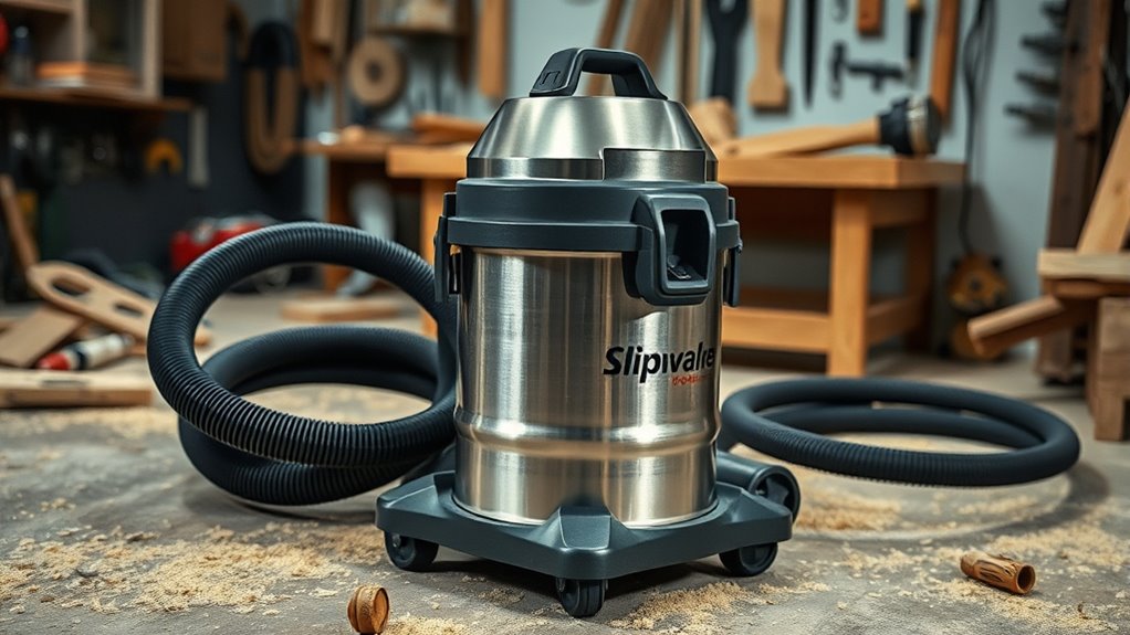 Typically, shop vacuums produce noise levels around 70 to 85 decibels, which can be quite loud. You’ll notice the noise during operation, especially with powerful models. Some vacuums have noise reduction features, but generally, their decibel ratings indicate they’re louder than regular household vacuums. Be prepared for a noisy environment, and consider ear protection if you’re working nearby for extended periods.