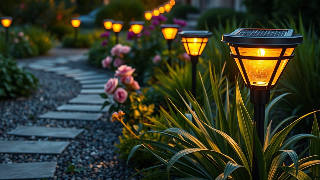 Are you ready to brighten your outdoor space effortlessly? Installing solar path lights is a fantastic way to add charm and functionality to your garden without increasing your energy bills. The key to successful installation lies in understanding how solar panel efficiency impacts your lights’ performance and exploring the variety of light color options available. When choosing your solar path lights, pay close attention to the solar panels, as their efficiency determines how well they capture sunlight during the day. Higher-efficiency panels convert more sunlight into energy, which means your lights will stay illuminated longer and shine brighter throughout the night. This is especially important if your garden receives limited sunlight or if you want consistent lighting regardless of weather conditions. Don’t settle for cheap, low-efficiency panels if you want reliable results; investing in quality solar panels ensures your landscape stays well-lit and safe. Research companies thoroughly to ensure you select durable and effective products.
