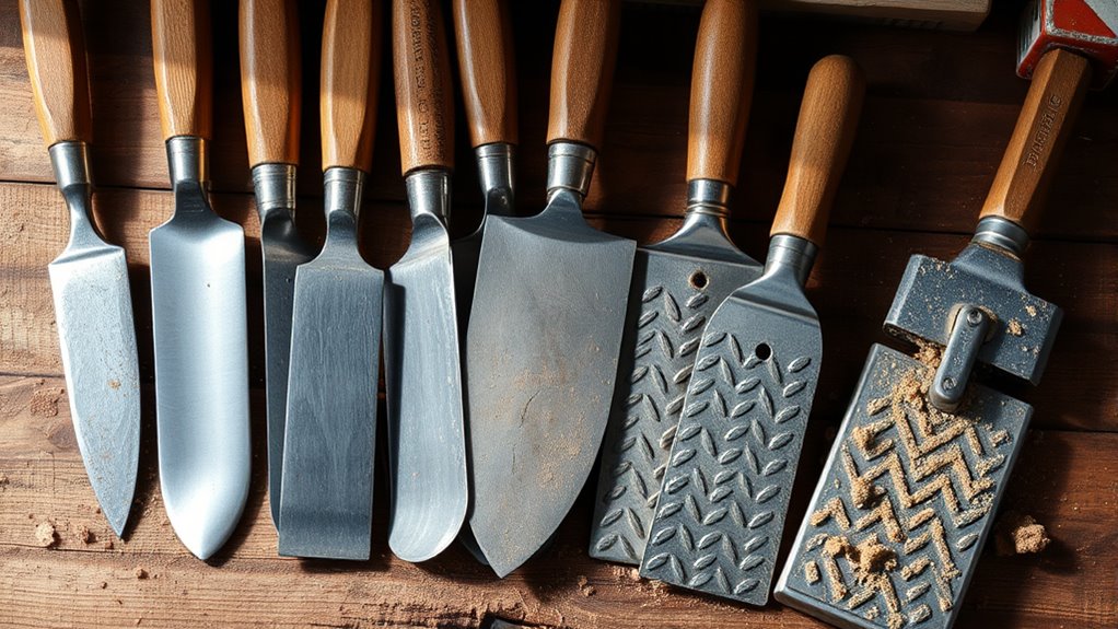 To choose and care for masonry tools, prioritize quality and safety. Select tools suited for specific tasks, such as durable trowels and chisels, and check for damage before use. Keep tools clean, sharpen blades regularly, and store them properly to prevent damage. Always wear protective gear and follow safety guidelines. Proper maintenance extends your tools’ lifespan and ensures safer, more efficient work. Keep going to discover essential tips for maintaining your masonry tools effectively.