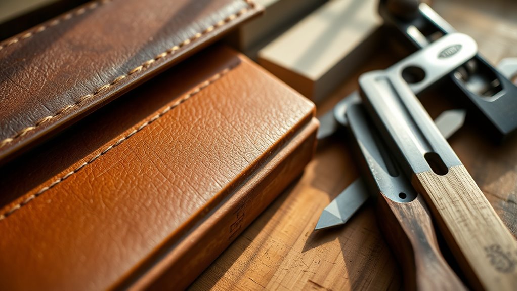 Ever wonder how your sharpening system stays effective over time? You should regularly clean and inspect your honing guides and tool storage to prevent dirt buildup that can affect performance. Keep your stones flat and replace them when worn. Proper maintenance guarantees precision and safety. Do you keep your tools organized and your honing guides in good condition? Staying proactive preserves your system’s accuracy and extends its lifespan.