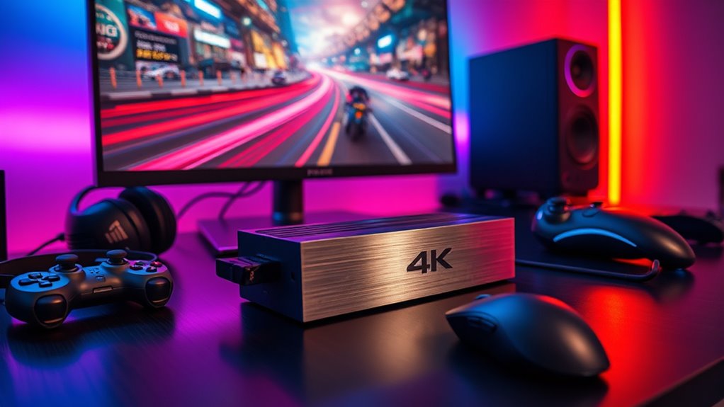 Coincidentally, maintaining my 4K60 capture card keeps it performing like new. I always keep it dust-free, store it in a cool, dry place, and avoid unplugging it suddenly. Regularly updating its firmware helps prevent glitches and extends its lifespan. I also handle it gently, avoiding bending or dropping. Following these simple tips guarantees my capture card stays reliable, delivering high-quality streams for years to come.