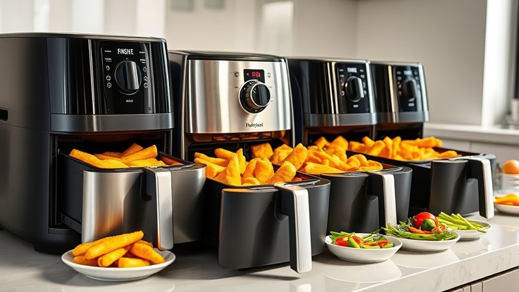 Choosing the right air fryer for a large family is like finding the perfect dance partner—once you do, cooking becomes smoother and more enjoyable. With options like spacious capacities and versatile features, you can whip up meals faster than ever. Just remember to contemplate your family’s needs and kitchen space. Whatever you pick, it will make your mealtime routine feel as effortless as a well-choreographed dance. Happy cooking!