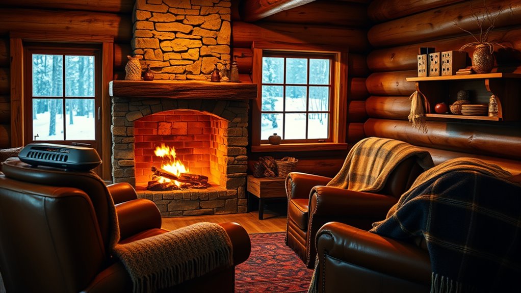 Ensuring safety and proper ventilation is vital when selecting a backup heating system for your cabin, especially if you opt for fuel-burning heaters. Proper airflow prevents dangerous carbon monoxide buildup, which can be deadly. Many heaters come with safety features like oxygen depletion sensors and automatic shutoff to reduce fire and suffocation risks. Ventless heaters should be used cautiously and only in well-ventilated spaces to maintain indoor air quality. Installing a carbon monoxide detector adds an extra safety layer, alerting you to unsafe gas levels. Regular maintenance and inspections of your heating system are critical for safe operation and to catch ventilation issues before they become hazards. Prioritizing these factors helps ensure your cabin stays warm without compromising safety.