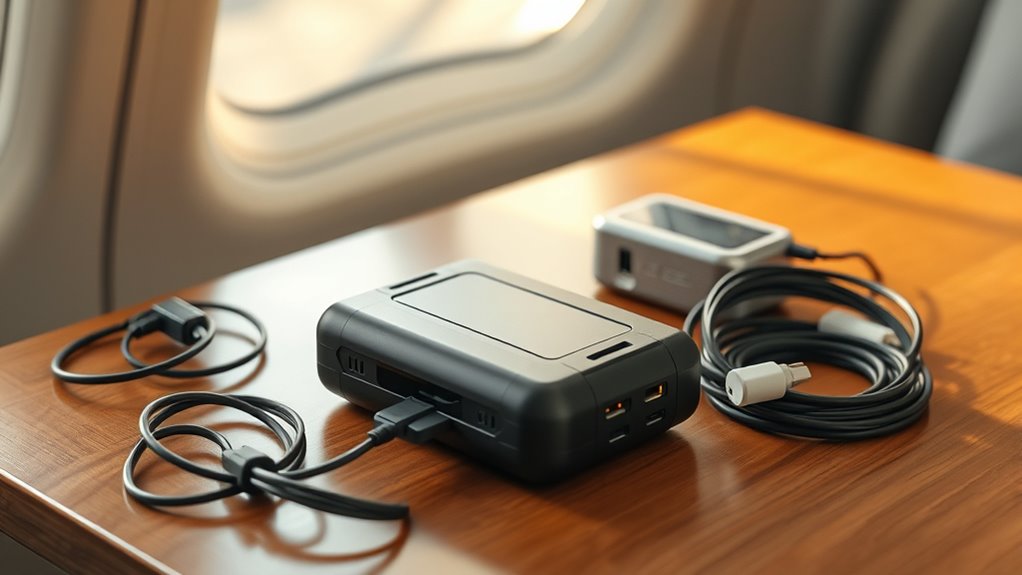 Lightweight and portable battery backups make traveling with your CPAP machine much easier. A unit under 5 pounds is ideal, reducing physical strain and making it simple to carry. Compact designs that fit into carry-on luggage or backpacks help maintain your mobility and convenience on the go. Many models feature built-in handles or ergonomic grips, which make handling even easier. Keep in mind, smaller capacity batteries are lighter and more travel-friendly, though they may need recharging more frequently. Balancing weight and capacity is key—consider the weight-to-capacity ratio to ensure you have enough power without sacrificing portability. Ultimately, choosing a lightweight, easy-to-carry backup enhances your travel experience, making it less cumbersome and more comfortable.