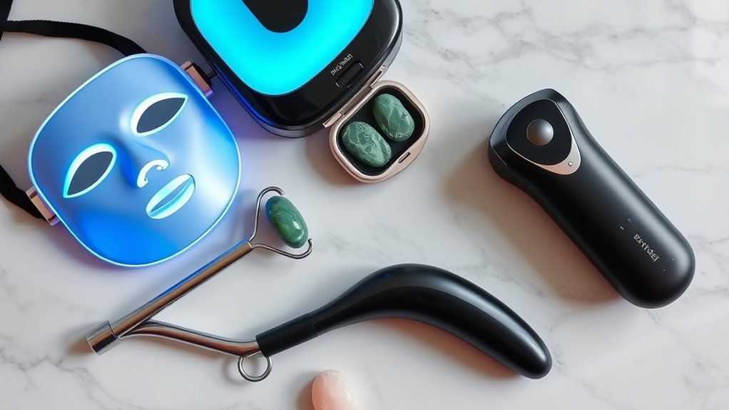 I’ve found some of the best beauty gadgets on Amazon that can really boost your skincare routine. These include precise eyelash and eyebrow tools, powerful facial cleansing devices, dermaplaning blades, eye massagers with heat, and versatile ice rollers. Plus, organizers and manicure kits help keep everything neat. If you want to discover how these tools can elevate your beauty game, keep going—there’s a lot more to explore.