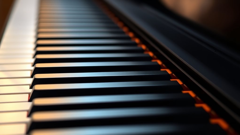 Choosing the right digital piano hinges considerably on its key action and feel, as these determine how closely the instrument mimics an acoustic piano. Weighted keys, especially those with hammer-action mechanisms, replicate the resistance and response of real piano keys, making playing more expressive. Fully weighted keys provide the most authentic feel, ideal for serious pianists. Semi-weighted keys strike a balance, offering moderate resistance and lighter touch, perfect for beginners or casual players. Velocity sensitivity is also vital—it allows the piano to respond dynamically to how hard or soft you play, adding nuance to your performance. Finally, the tactile feedback should feel natural and comfortable, supporting a wide range of techniques like legato, staccato, and vibrato, ultimately enhancing your playing experience.