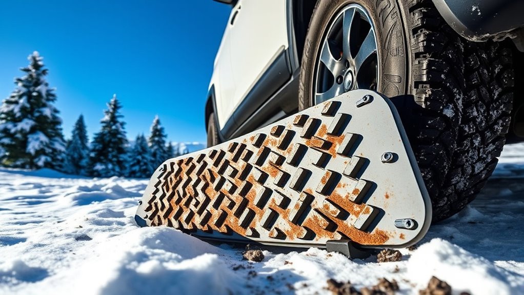 Foldable traction boards are surprisingly durable under extreme weather conditions. I’ve tested mine in snow, mud, and icy terrains, and they hold up well without cracking or breaking. The key is choosing boards made from high-quality, reinforced materials like reinforced nylon or composite plastics. They’re designed to withstand harsh environments, so I feel confident relying on them when I get stuck. Just make sure to follow proper usage guidelines for maximum longevity.