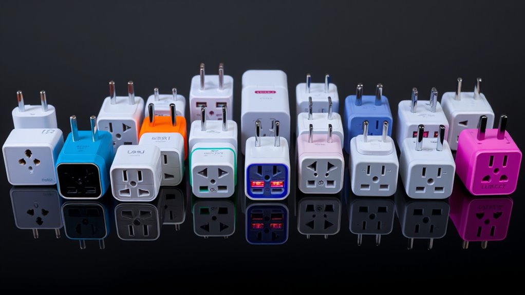 These travel adapters come equipped with essential safety features like overcurrent, overvoltage, and short-circuit protection, so I can charge my devices confidently. They also have surge protection to guard against power spikes and built-in safety shutters to prevent accidental contact with live parts. Plus, many include temperature regulation to avoid overheating. I always feel secure knowing these features protect my devices and me during travel.