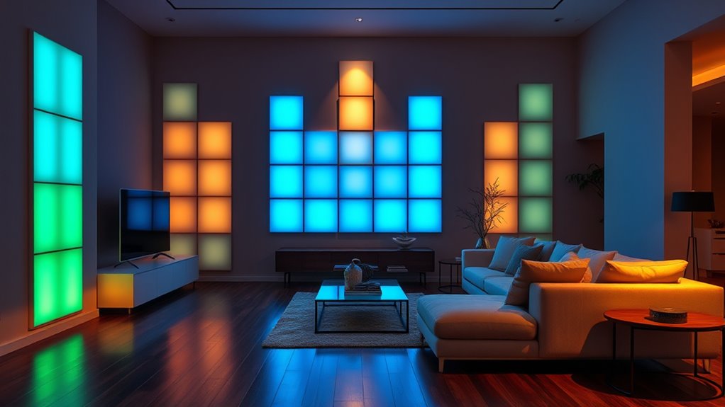 Think of these smart light panels as the sturdy oak trees in your home’s garden. They’re built with high-quality materials, making them incredibly durable and long-lasting. I’ve found that with proper installation and minimal maintenance, they can shine brightly for years, resisting daily wear and tear. So, you can enjoy their vibrant glow without worry, knowing they’re designed to stand the test of time.
