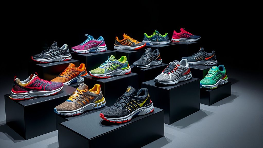 The collectibility potential of limited-edition athletic shoes depends on several key factors that influence their long-term value. Unique design elements or collaborations greatly boost desirability, making them more attractive to collectors. The number of units produced is also critical—fewer pairs generally mean higher rarity and potential appreciation over time. Authenticity verification, including original packaging and official branding, guarantees the shoe’s legitimacy and future worth. Shoes linked to significant events, anniversaries, or collaborations often gain cultural or historical importance, further increasing their collectibility. Additionally, understanding past demand and resale trends helps predict long-term investment potential. By considering these factors, you can better assess which limited-edition shoes are likely to hold or increase their value, making informed choices for your collection.