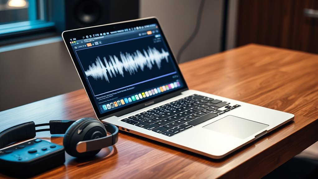 To get the best MacBook Pro for music production without breaking the bank, I recommend setting a clear budget from the start. This helps narrow down options and prevents overspending on features you might not need. Remember to factor in the cost of accessories like external audio interfaces or professional software, as these can add up. Higher RAM and storage options, essential for handling large projects and plugins, usually increase the price. It’s all about balancing your budget with the required specs, such as a powerful CPU and GPU, to ensure smooth workflow. Also, keep an eye out for deals or refurbished models—these can offer premium features at a more affordable price, making it easier to get a great MacBook Pro without overspending.