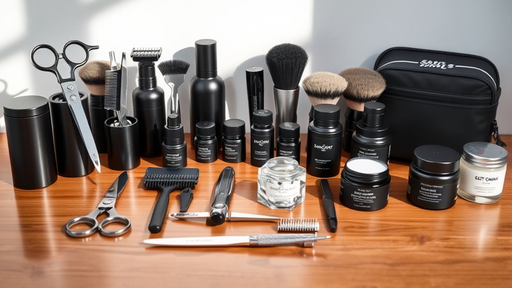 Premium grooming kits stand out with high-quality tools, durable materials, and precise craftsmanship, making them last longer and perform better. They often include a wider range of grooming options, like specialized trimmers or skincare products. Budget kits may cut corners on quality and variety, using cheaper materials that wear out faster. I find that investing in a premium kit saves money and guarantees I always look sharp without frequent replacements.