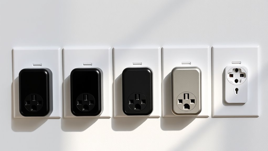Choosing a powerline adapter with passthrough outlets requires making certain that speed ratings align with or exceed your internet plan. This guarantees you get the best possible performance without bottlenecks. Compatibility between different powerline standards, like AV1000, AV2000, or G.hn, also influences maximum speeds—you’ll want to match or upgrade to higher standards for demanding tasks. Keep in mind, the actual data transfer speeds depend heavily on the distance between adapters and the quality of your electrical wiring. For top-tier performance, adapters should be on the same electrical circuit—crossing circuits can cause significant speed drops. Upgrading to a higher speed-rated adapter can make a noticeable difference, especially if you’re streaming 4K content or gaming. Prioritize speed compatibility to ensure a seamless, fast network.