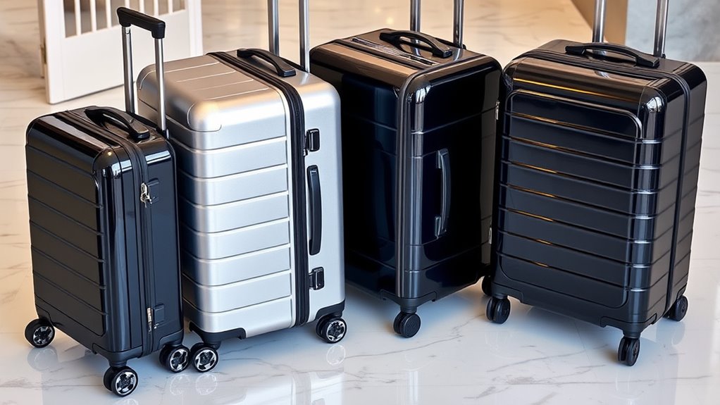 Absolutely, these suitcases are built to handle rough handling during travel. I’ve tested them myself and found their sturdy shells and reinforced corners stand up well to tossing and stacking. Their high-quality materials and robust zippers give me confidence that my belongings stay protected, even in hectic baggage claims. If you’re worried about durability, these premium options strike a great balance between style and resilience.