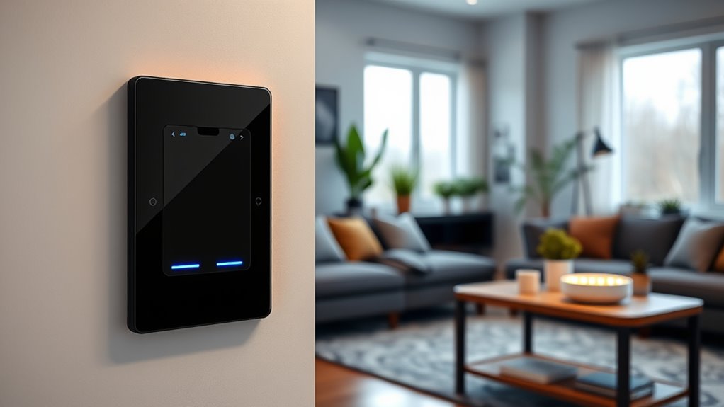 Choosing a smart dimmer switch isn’t just about wattage limits; reliable connectivity plays a critical role in guaranteeing smooth operation. The technology used—Wi-Fi, Zigbee, Z-Wave, or proprietary protocols—affects stability and range. Devices with dedicated hubs or bridges tend to perform more consistently and resist interference better than Wi-Fi-only options. Wireless remote controls with RF signals can control lights through walls and obstacles, boosting reliability. Some systems avoid Wi-Fi entirely, ensuring uninterrupted operation during network outages, which is essential for automation and manual control. Compatibility with multiple smart home platforms and standard communication protocols also enhances dependability. Overall, paying close attention to connectivity options ensures your smart dimmer will work seamlessly, providing reliable control and peace of mind in your home automation setup.