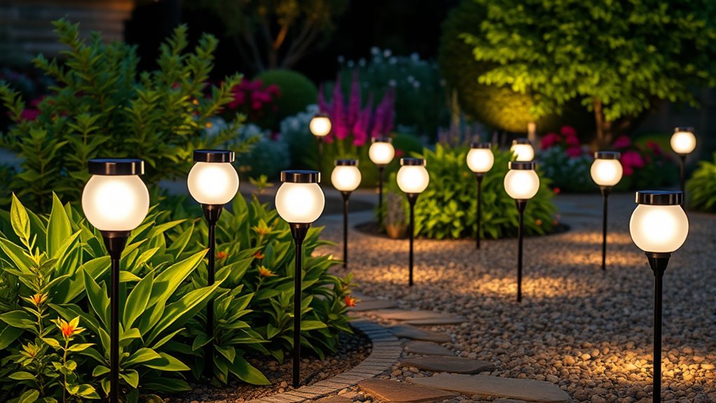 If you’re looking to brighten your outdoor space in 2025, I recommend exploring some of the top solar garden lights available today. From enchanting firefly designs with swayable wires to globe-shaped vintage styles and waterproof pathway options, these lights combine style, durability, and energy efficiency. With features like adjustable modes, long-lasting batteries, and weather-resistant materials, you’ll find options that suit any garden aesthetic. Keep going to discover more detailed insights and select the perfect set for your outdoor oasis.