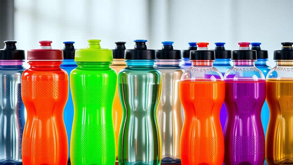 When selecting a water bottle, maintaining the right temperature of your drinks can make a big difference during workouts or outdoor activities. Insulated sports bottles with double-wall insulation are designed to keep drinks cold for up to 24 hours or hot for several hours. The effectiveness of insulation depends on materials like stainless steel or vacuum-sealed walls, which enhance thermal retention and durability. Good insulation not only preserves the temperature but also reduces condensation, keeping the bottle dry and easy to handle. This helps maintain the freshness and potency of sports drinks, ensuring you stay hydrated and energized throughout your activity. When choosing, look for bottles with high-quality insulation that suits your activity duration and environment.