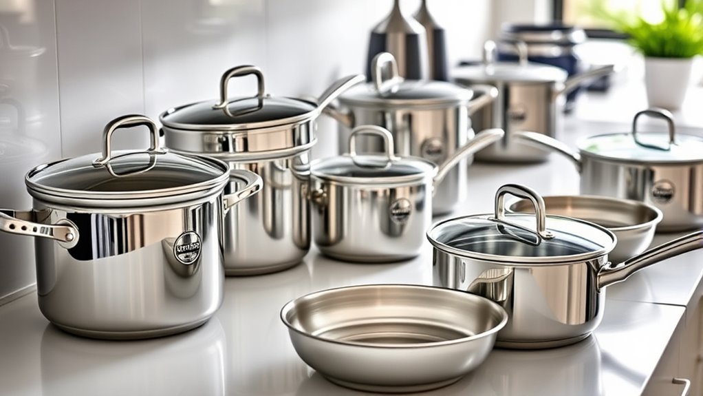 No matter which set you choose, investing in quality stainless steel cookware makes all the difference—your culinary adventures will feel like they’re straight out of a 1950s kitchen, with the gleam of polished pots and the sound of sizzling that takes you back in time. Remember, the right cookware isn’t just about style; it’s about effortless cooking and lasting durability. So, pick your set and get ready to create timeless dishes with ease!