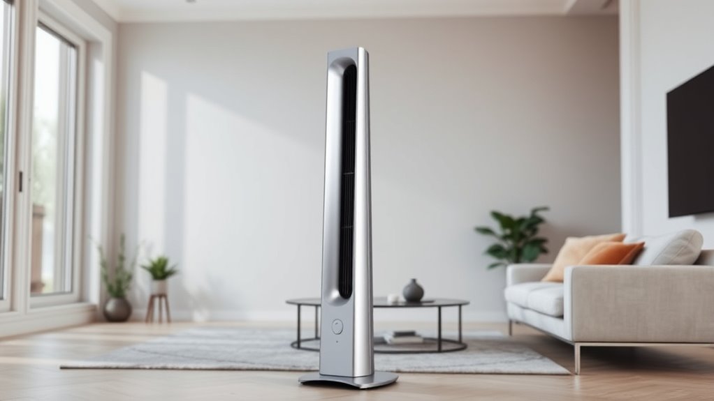 If you’re looking for the best tower fans in 2025, I’ve found models with sleek designs, powerful airflow, and quiet operation perfect for bedrooms and living spaces. Many include smart features like Wi-Fi, voice control, and remote access to customize your comfort easily. Size and noise levels vary to suit your needs, and safety and energy efficiency are also key considerations. Stay tuned to find out which options stand out for style, performance, and convenience.