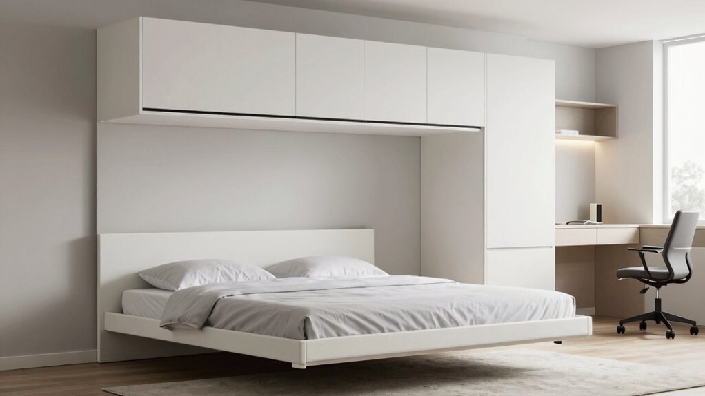 Did you know that proper maintenance can extend a Murphy bed’s lifespan by up to 20 years? I recommend regularly inspecting the hardware for rust or wear, tightening any loose bolts, and lubricating hinges and joints to guarantee smooth operation. Keep the bed clean with a damp cloth and avoid overloading it. Regular checks will keep your Murphy bed durable and functional for years to come.
