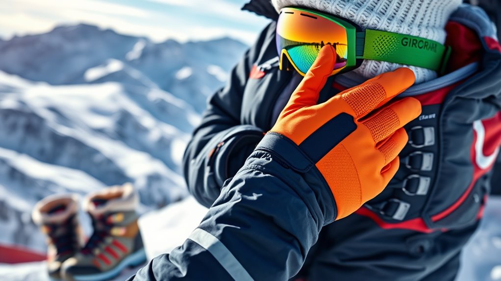 Think of your winter gear like a trusted partner—regular care keeps it in top shape. I wash my gear after every few uses, especially if I sweat or get muddy, to prevent odors and bacteria. I follow manufacturer instructions for washing and drying, and I always check for tears or worn spots before hitting the slopes again. Proper maintenance guarantees your gear stays warm, breathable, and ready for action.